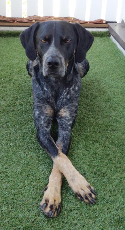 Das wars eigentlich auch schon fast, denn bei Pfote geben im Platz wird Ihr Hund früher oder später aus Versehen die Pfoten überkreuzen. Loben und bestärken Sie ihn dafür.