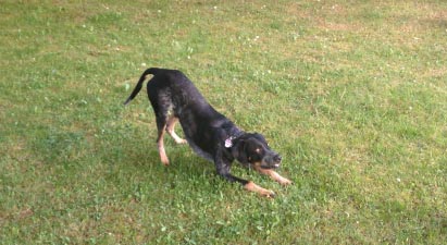 Verbeugen ist ein sehr schöner Trick, der auch noch recht einfach zu lernen ist. Allerdings sollten Sie darauf achten, dass der Hund nicht zu lange in der Position verharrt, da es für den Rücken auf Dauer anstrengend sein kann.