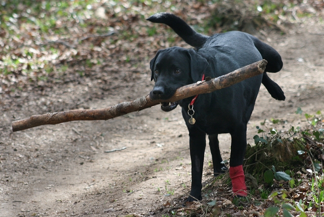 Wenn Sie das Targeting eher so verwenden, dass der Hund auf einen Gegenstand tritt, den Sie vorher mit dem Stab angetippt haben, werden Sie die Beobachtung gemacht haben, dass Ihr Hund suchend sein Bein hebt und mit mehreren Anläufen versucht, den Target-Stab zu ertasten. Dies können Sie sich zu nutze machen und diese Situation klickern. Auch hier ist das Timing wieder sehr wichtig.