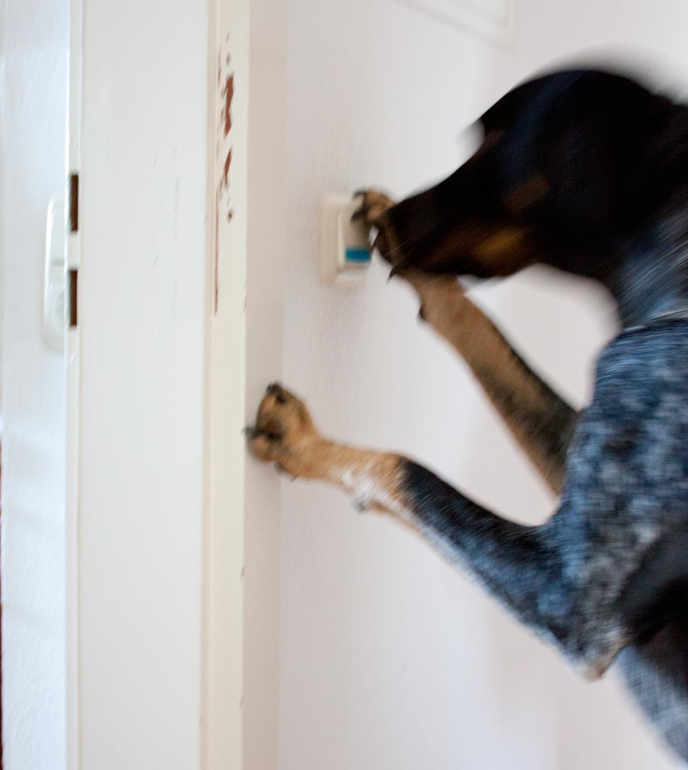 Kleine Warnung: Sie sollten nicht allzu empfindlich sein, was Ihre Wand angeht. Der Hund wird die Wand entlangkratzen. Und spätestens nach einem halben Jahr werden Sie deutliche Abnutzungs-Spuren an der Wand erkennen können.